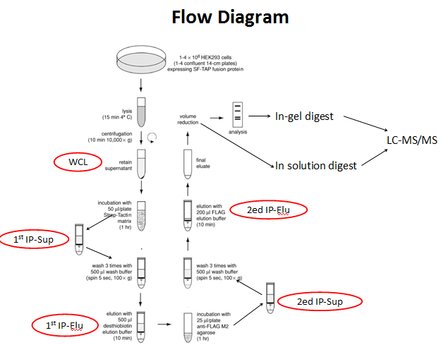 基本流程: 構建含有目的基因的載體,使目的基因與2個不同的表位標簽融合表達,如Flag、HA、Strep、His、CBP、SBP等等。安提海拉生物科技有限公司采用N端 2*strep tag+Flag tag或者C端 6*His tag+Flag tag雙標簽載體;載體轉染細胞并表達融合蛋白“2*strep-Flag –目標蛋白”或“6*His-Flag–目標蛋白”;細胞裂解提取總蛋白,經streptactin beads或Nickelbeads和Flag M2 beads的兩步純化和洗脫,更大限度了去除了假陽性蛋白。洗脫液進入質譜儀,分析鑒定與目標蛋白具有相互作用的蛋白。