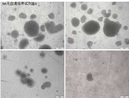 圖1. 培養(yǎng)10天后NK細胞的形態(tài)。培養(yǎng)于NK無血清培養(yǎng)試劑盒II、NK培養(yǎng)試劑盒、競爭產(chǎn)品I和競爭產(chǎn)品Y10天后的NK細胞。以上為隨機選擇的照片。比例尺:200 µm。