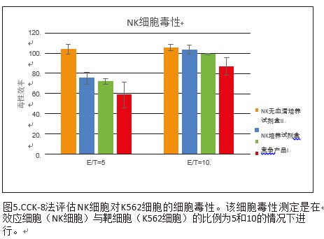 (CD3-/CD56+)的表達。此外,該NK細胞還通過CCK-8法,以K562作為靶細胞(效應(yīng)細胞與靶細胞,即E/T的比率為5和10)檢測其細胞的毒性殺傷能力。