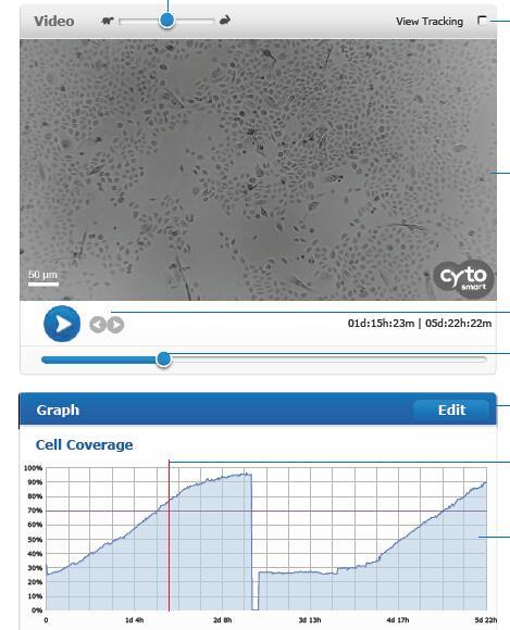 CytoSMART攝制的Video、按照?qǐng)D片分析出的細(xì)胞覆蓋率時(shí)間曲線